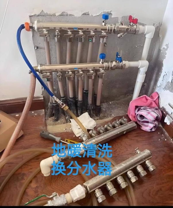 1:专业清洗地暖,换地暖分水器,换阀门,换锁闭阀,拆装限流阀,清洗过滤网。