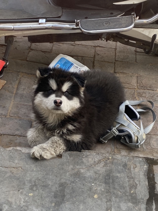 此阿拉斯加于二月二十五号晚上在大保当邮政附近走丢 请看到或者领养的好心人联系我 当面酬谢
